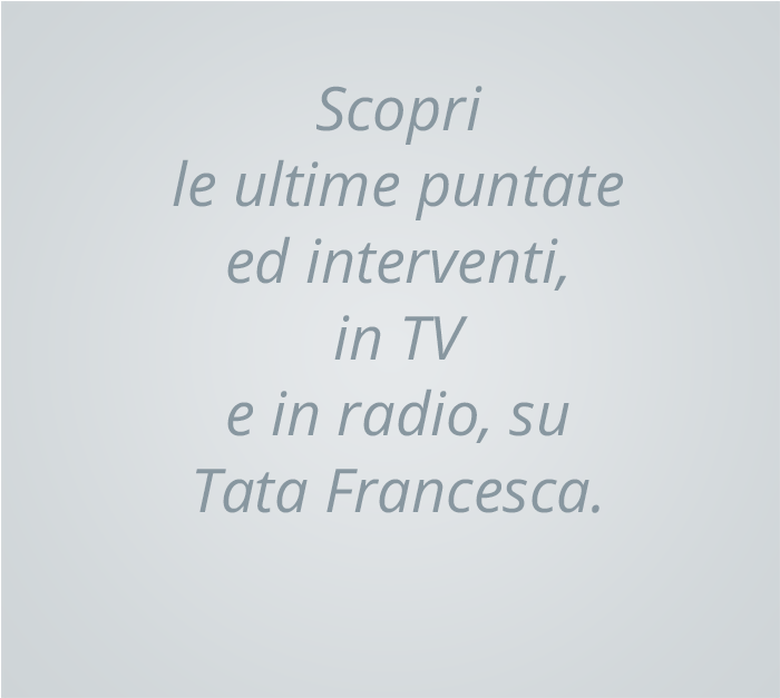 Francesca sostiene Mission Bambini, una Fondazione impegnata ad aiutare in Italia e nel mondo i bambini poveri, ammalati, senza istruzione, sfruttati e i giovani in condizione di svantaggio sociale. In Italia Mission Bambini ha contribuito a dar vita o ampliare più di 100 asili nido e spazi gioco, dando la possibilità a oltre 4.500 bambini in difficoltà economica di frequentare il nido.